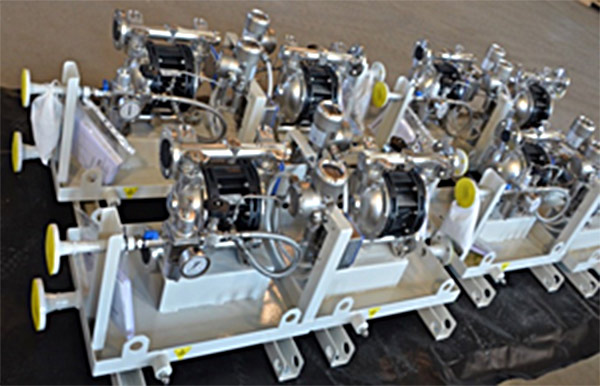 Le pompe pneumatiche a doppia membrana sono utilizzate per il pompaggio di fluidi con viscosità apparenti elevate, anche con solidi in sospensione.